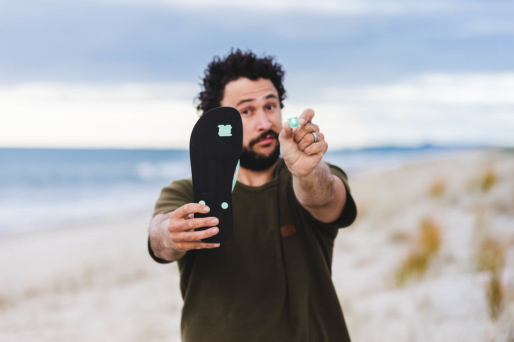 For generations, Kiwis and Aussies have been fixing their jandals / thongs using a bread-tag. Because those tiny round plugs just ALWAYS pull through, causing an unwanted blowout. The bread tag simply slotted onto the plug bit on the underside of the jandal to stop it from pulling through the base. We have taken inspiration from this piece of D.I.Y ingenuity and designed a plug with the bread-tag already built in! A larger, stronger bread-tag shaped plug that won't pull through - it's bloody genius!